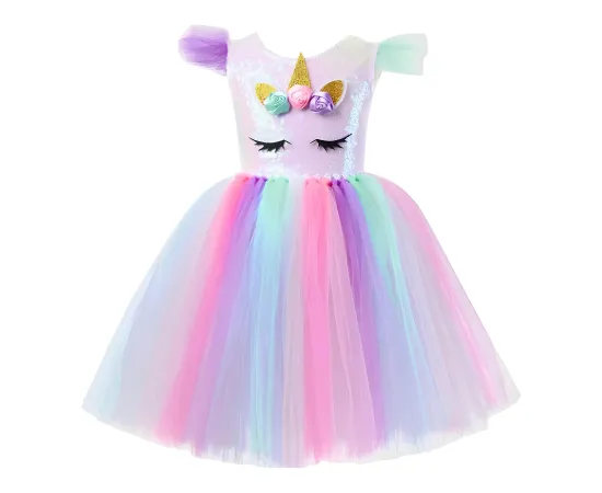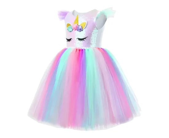 Rochiță Fetiță – Unicorn cu Tul Colorat si Bentita