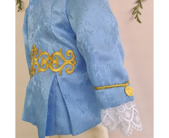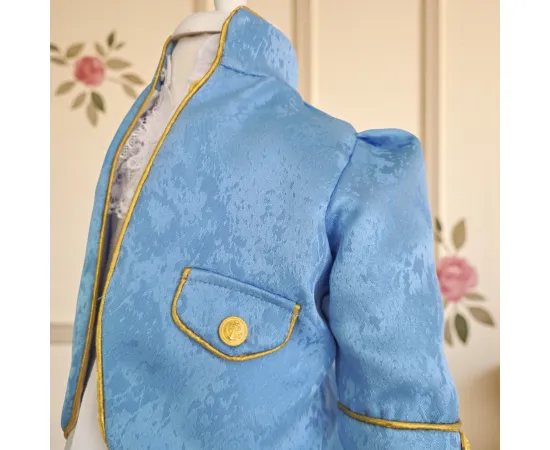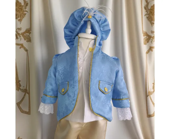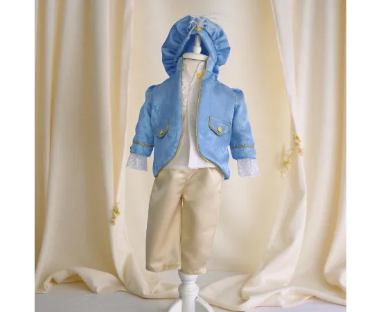 Un costum cu aer princiar și accente marine, perfect pentru o apariție memorabilă în ziua botezului.