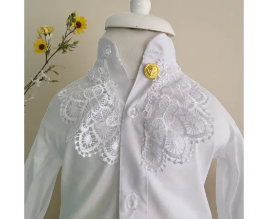 Costumaș botez „Gentlemanul Mării” – un set de 4 piese, creat pentru a aduce un plus de noblețe și rafinament în ziua specială a botezului.