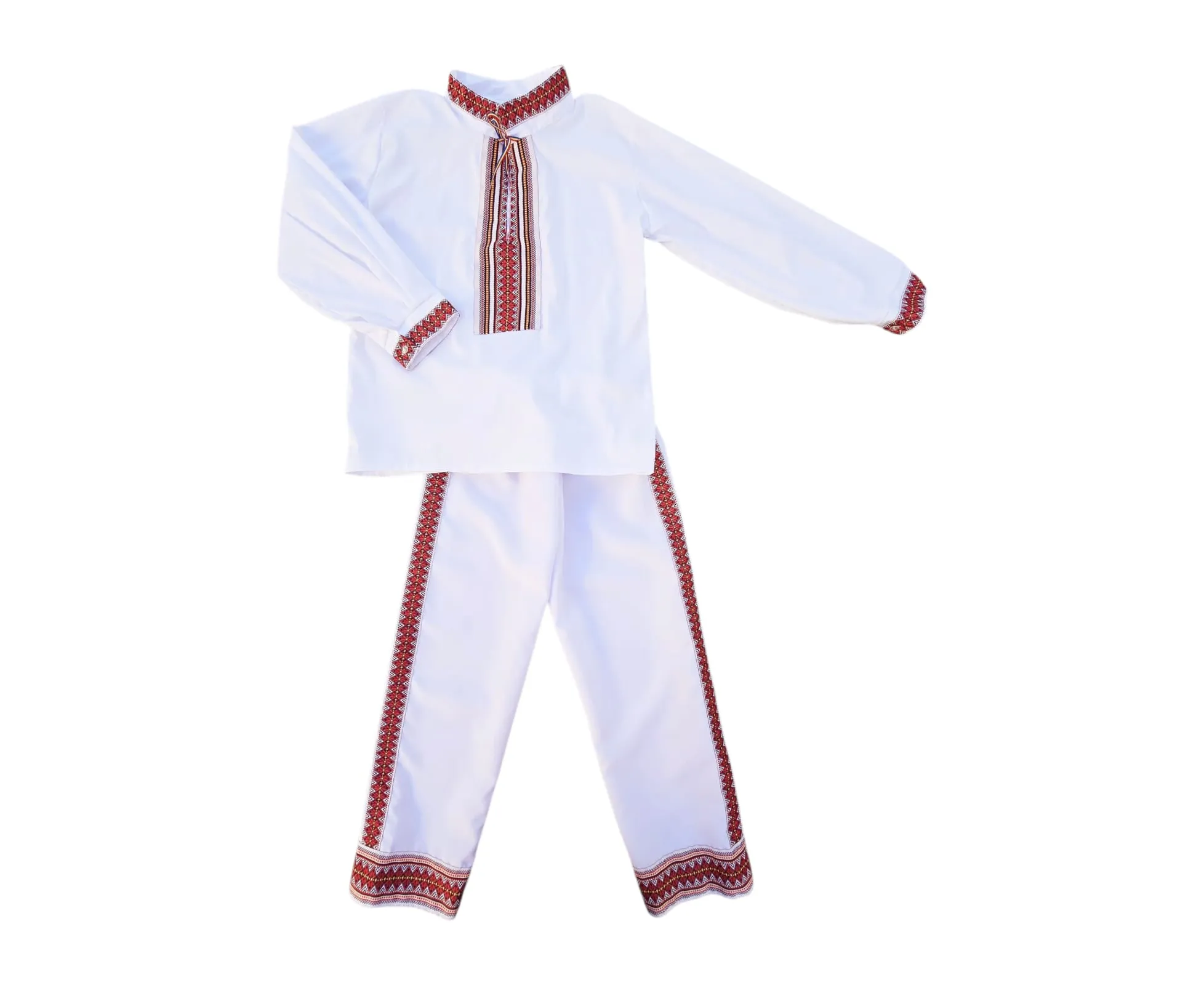 Costum Traditional baieti - alba cu motive traditionaee rosii - GBY114