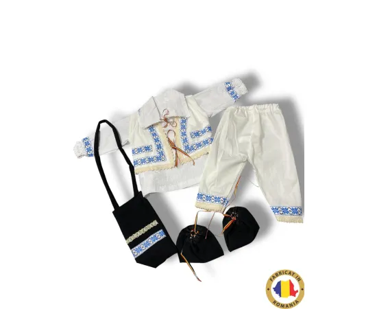 Transformă fiecare sărbătoare și moment special într-o experiență autentică pentru micuțul tău cu acest costum tradițional românesc complet, creat special pentru băieței. Setul include pantalonii tradiționali, cămașa brodată, ciupicii și o gentuță asortată, toate realizate cu atenție la detalii și cu respect pentru frumusețea motivelor populare românești.
