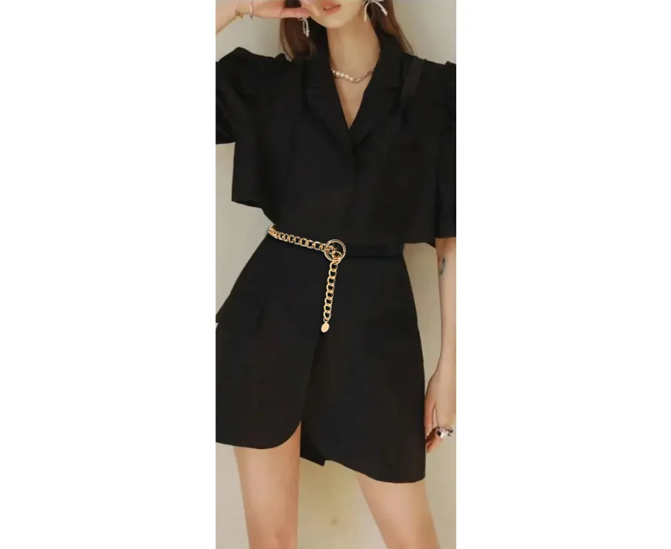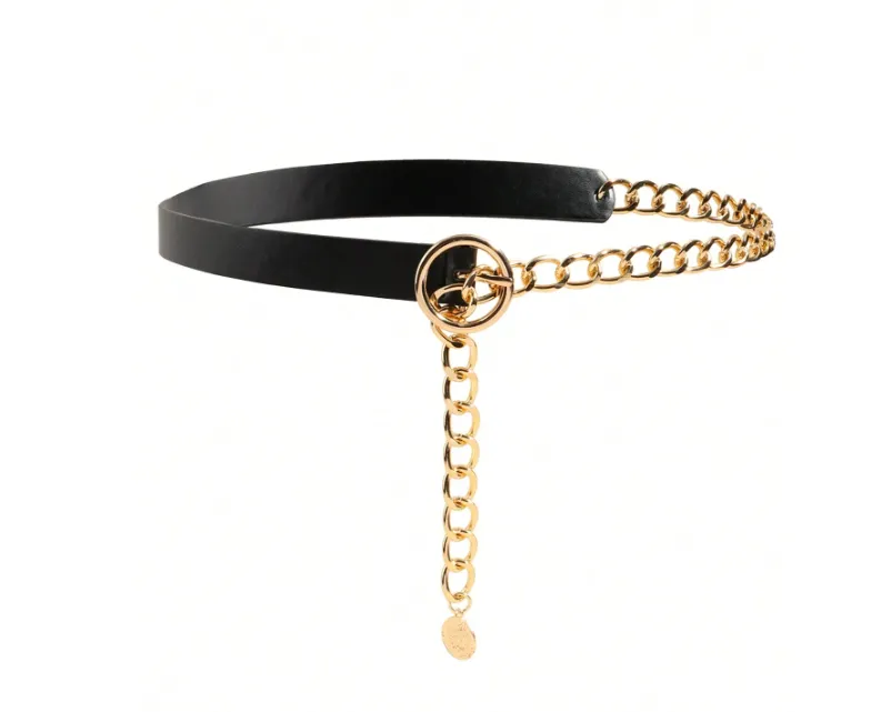 Curea casual dama - Neagra, cu Lant Metalic - 414641