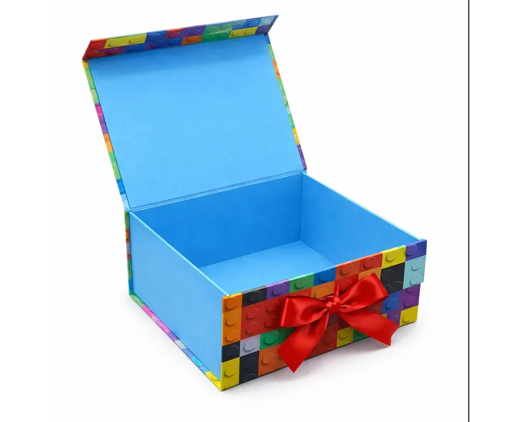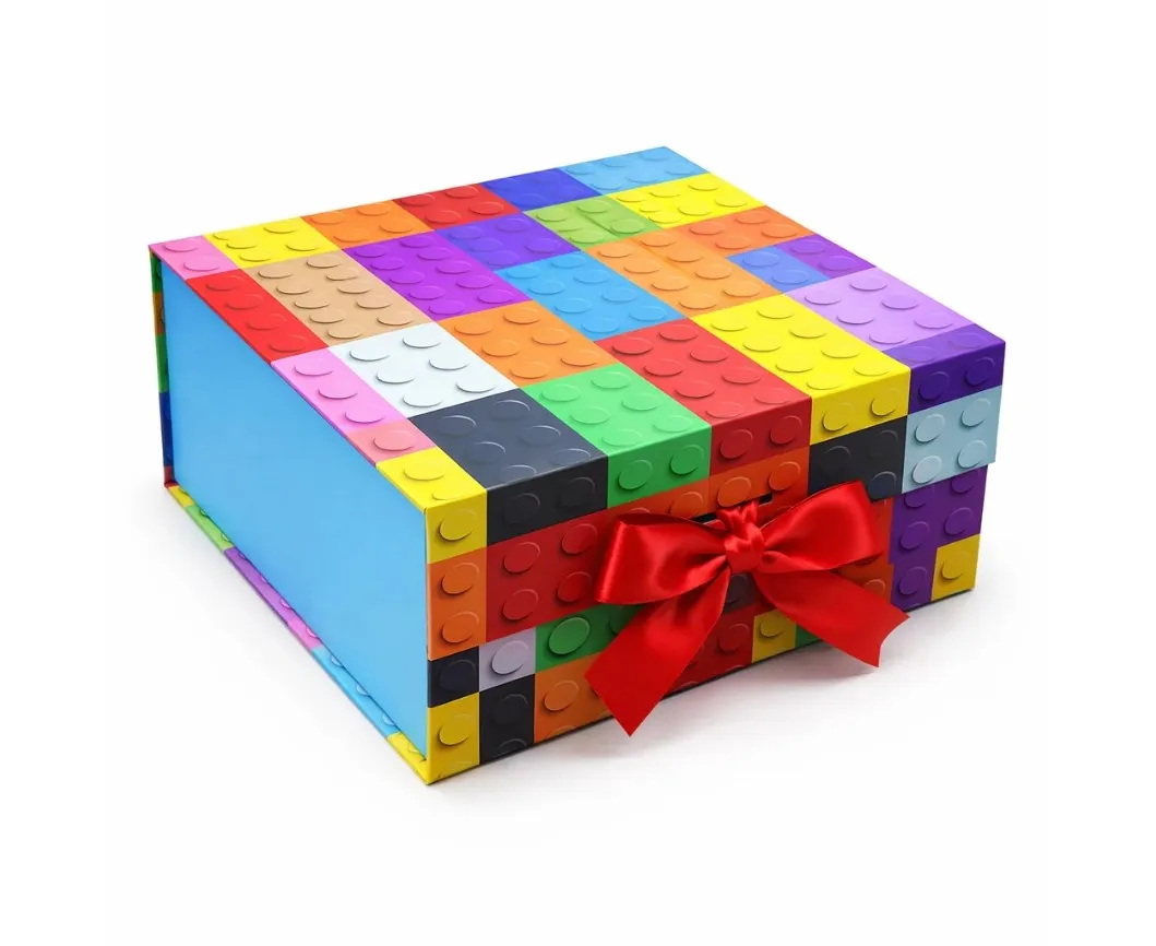 Transformă orice cadou într-o surpriză plină de bucurie cu această cutie cadou veselă, cu design inspirat din piese colorate, care atrage imediat atenția. Culorile vibrante și fundița satinată roșie oferă un aspect jucăuș și modern, perfect pentru a aduce un zâmbet încă de la prima vedere.