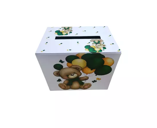 Cutie Dar Botez, Alba cu Ursulet si Baloane Verzi - CDB04