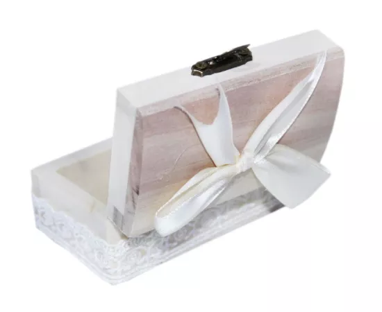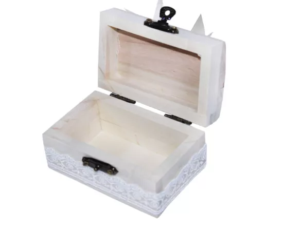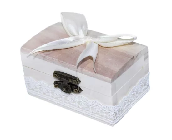 Cutiuta Cufar Din Lemn Pentru Prima Suvita a Bebelusului, Ivoire cu Dantela - CPS08