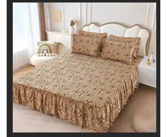 Cuvertură Pat Dublu, cu Volane, din Catifea, 3 Piese – 180x200 cm + 2 Fețe de Pernă, Bej Nisipiu - LIM211