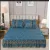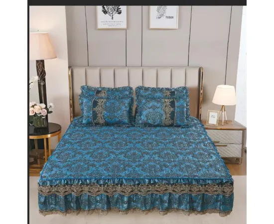 Cuvertură Pat Dublu, din Catifea cu Dantelă, 3 Piese – 230x250 cm + 2 Fețe de Pernă, Albastru - LIM207