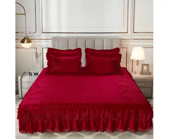 Setul cu cuvertură pentru pat din catifea este o alegere elegantă și luxoasă pentru orice dormitor. Acest set include o cuvertură moale și matasoasă din catifea, care adaugă o notă de rafinament și confort suprem în camera ta. Catifeaua este cunoscută pentru textura sa fină și aspectul său strălucitor, ceea ce face ca acest set de cuvertură să fie atât de atractiv vizual.