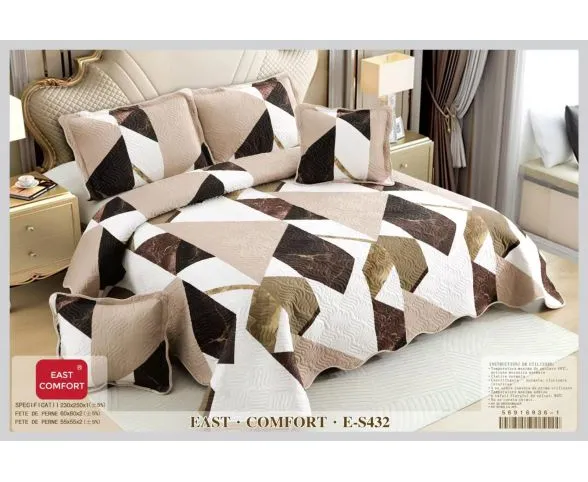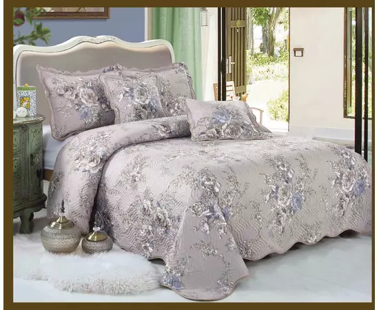 Cuvertura de pat matlasata, confectionata din bumbac tip tesatura finet.Imprimeul acestui set (cuvertura pat plus fete de perna) este