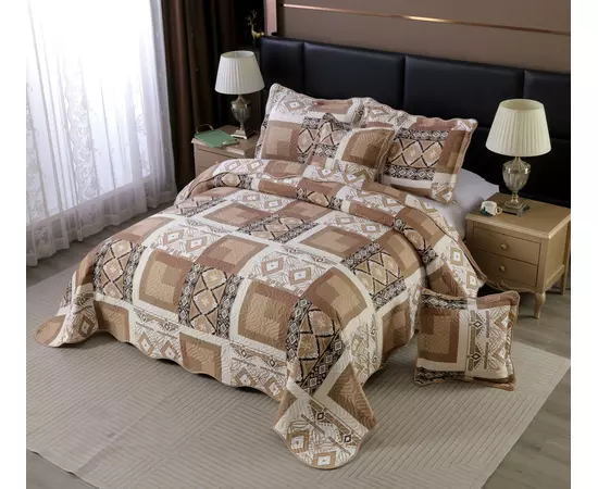Cuvertura de pat matlasata, confectionata din bumbac tip tesatura finet.Imprimeul acestui set (cuvertura pat plus fete de perna) este realizat cu cele mai noi tehnologii - garantat nu se decoloreaza daca se respecta instructiunile de intretinere.