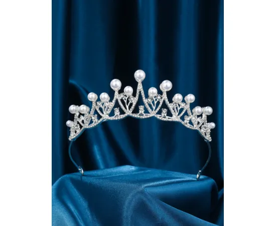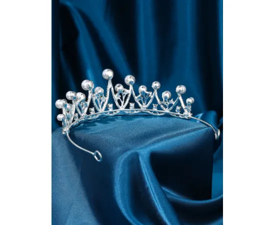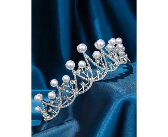 Diadema (Coronita) Aurie pentru Mireasa cu Pietre si Perle, 30 cm - 542254