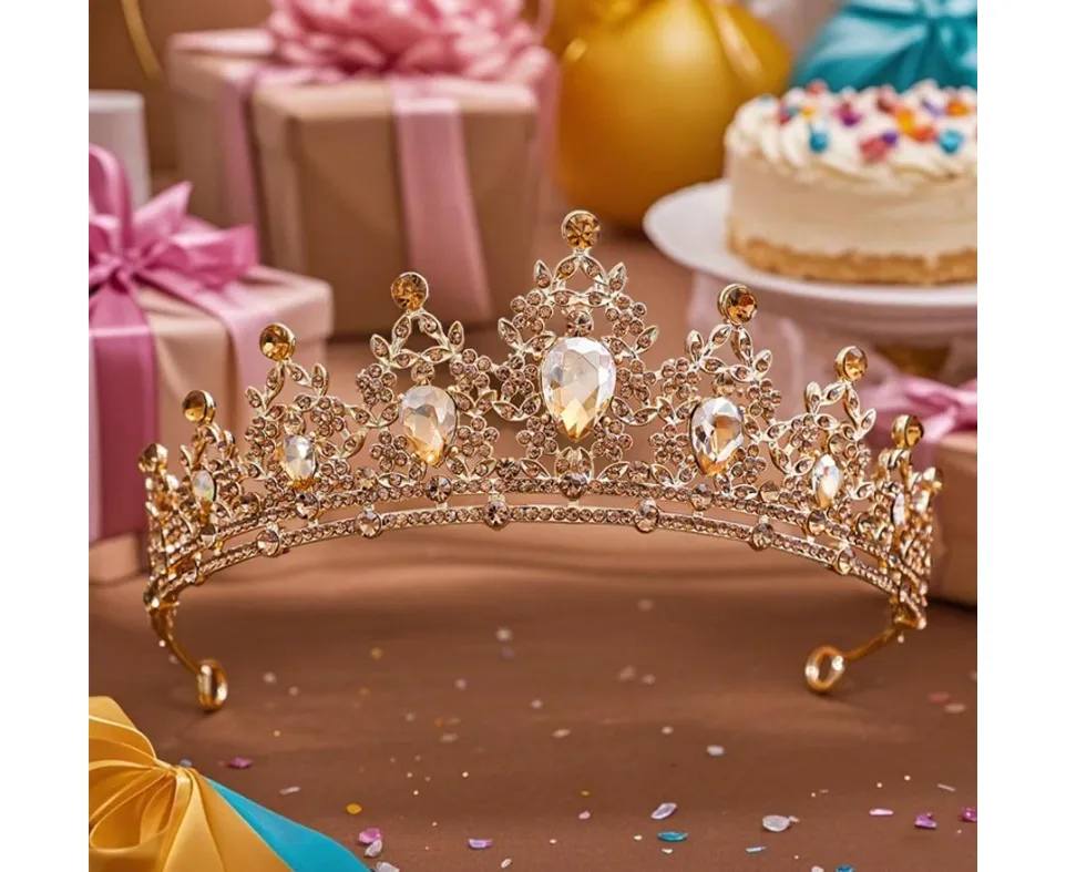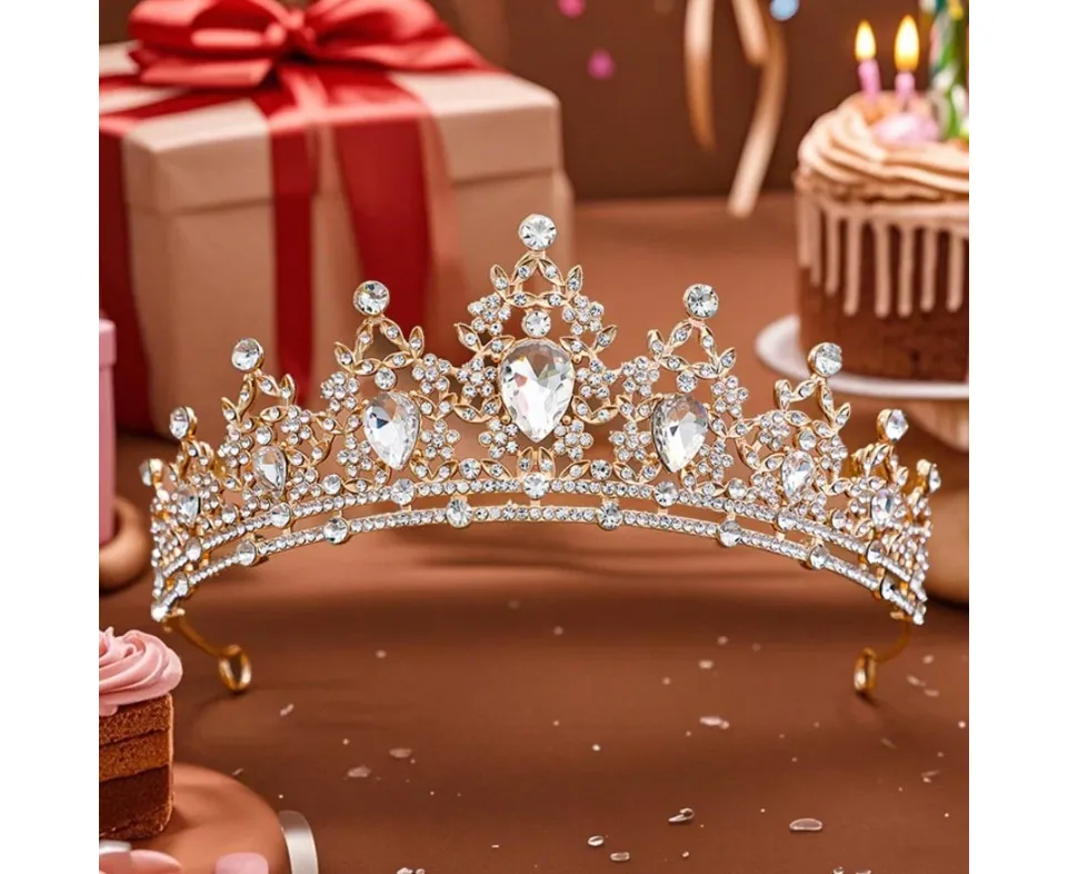 Diadema (Coronita) Aurie pentru Mireasa cu Strasuri si Pietre - 414793