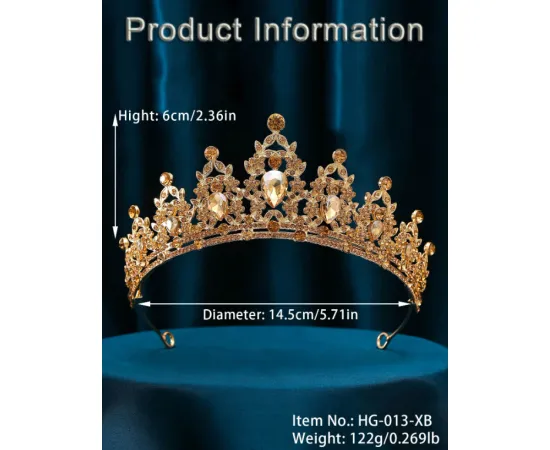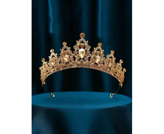 Diadema (Coronita) Aurie pentru Mireasa cu Strasuri si Pietre - 606266