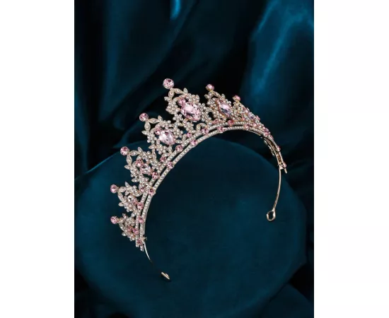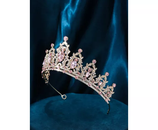 Diadema (Coronita) Aurie pentru Mireasa cu Strasuri si Pietre Roz