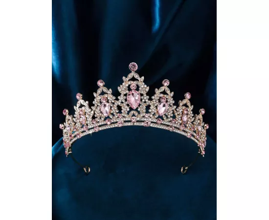 Diadema (Coronita) Aurie pentru Mireasa cu Strasuri si Pietre Roz - 92132