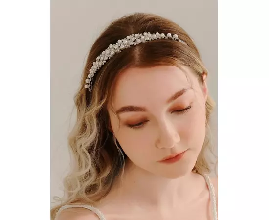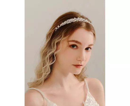 Bentita Mireasa cu Strasuri si Perle Artificiale, Argintie - 70502