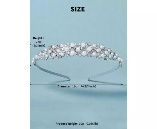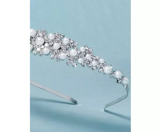 Diadema (Coronita) Mireasa cu Strasuri si Perle Artificiale - Argintie - Circumferinta 36 cm