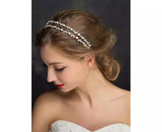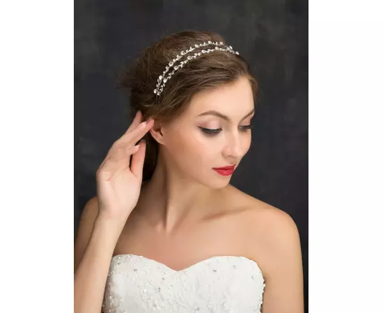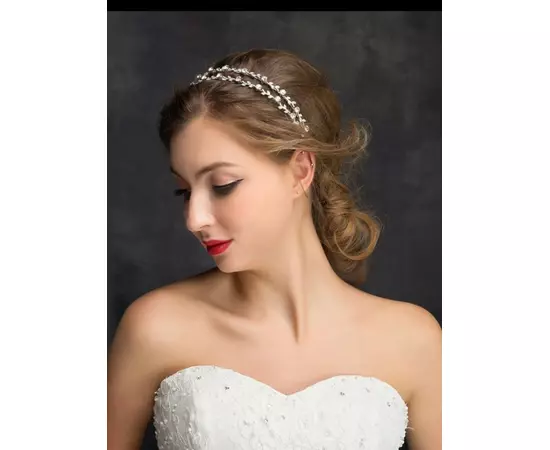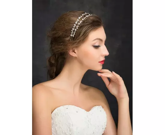 Diadema (Coronita) Mireasa Model cu Pietre si Strasuri Argintie Circumferinta 42 cm-19463
