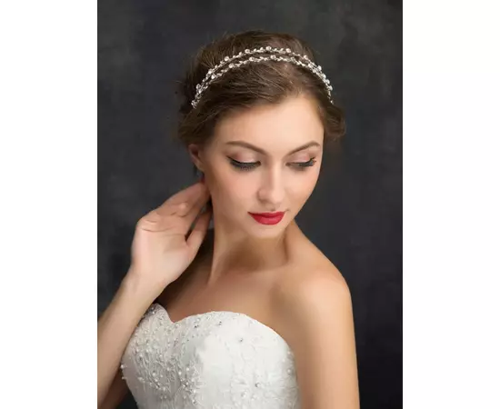 Diadema (Coronita) Mireasa Model cu Pietre si Strasuri - Argintie - Circumferinta 42 cm