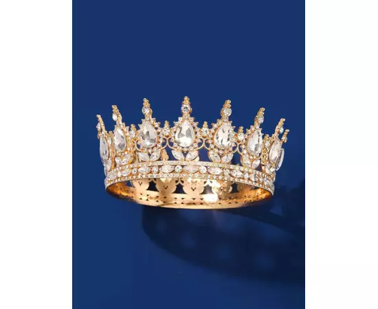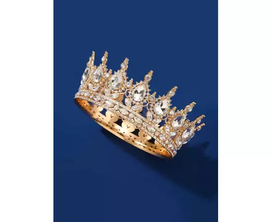 Diadema (Coronita) Mireasa, Model Regal cu Pietre si Strasuri, Aurie - 01098