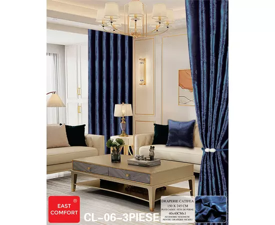 Draperie Din Catifea 150 x 245 Albastru Cu Model CADOU Fata De Perna Si Accesoriu Magnetic Draperie- DRS1016