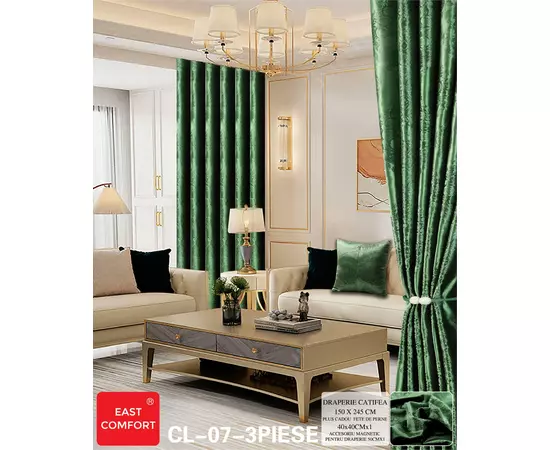 Draperie Din Catifea 150 x 245 Verde Cu Model CADOU Fata De Perna Si Accesoriu Magnetic Draperie- DRS1017