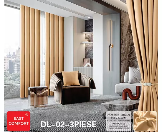 Draperiile sunt potrivite pentru orice interior, precum camera de zi, dormitor, spațiu de birou, și alte încăperi. Vă oferă intimitate și vor bloca lumina solara in proportie de 70 – 90%, reducand in acelasi timp si incalzirea camerei in zilele calduroase Eficiente si împotriva curentului de aer iarna.