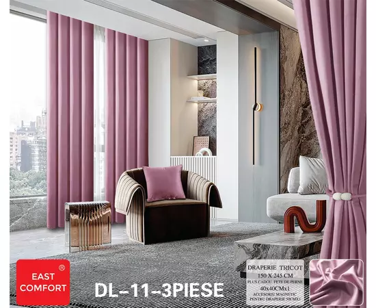 Draperiile sunt potrivite pentru orice interior, precum camera de zi, dormitor, spațiu de birou, și alte încăperi. Vă oferă intimitate și vor bloca lumina solara in proportie de 70 – 90%, reducand in acelasi timp si incalzirea camerei in zilele calduroase Eficiente si împotriva curentului de aer iarna.