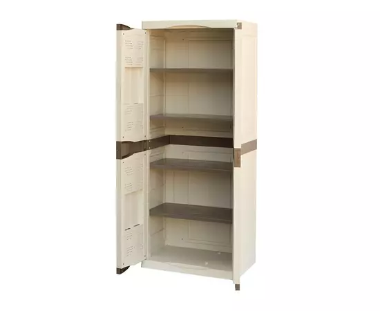 Dulapul cu design elegant, material cu suprafata texturata si manere ergonomice isi gaseste utilitatea atat in interior cat si in exterior. Datorita materialului din care este realizat, nu retine mirosuri sau umezeala, este usor de curatat si se preteaza si pentru incaperi cu umiditate ridicata.