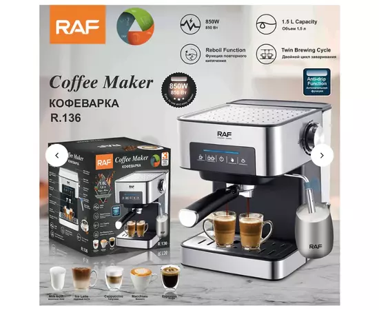 Espressor Automat de Cafea RAF 136, Capacitate 1.6L, 850W
