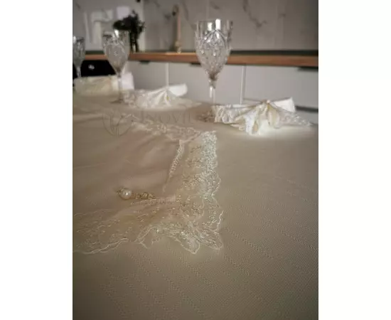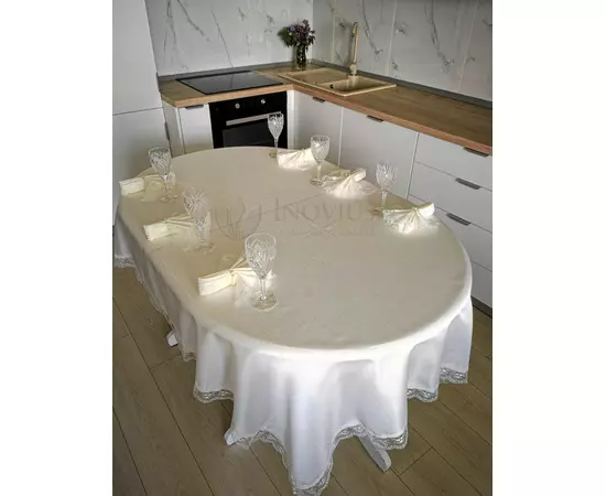 Fata de Masa cu Napron, Imprimeu Tip Dantela, 160 x 220 cm - INVFBM11