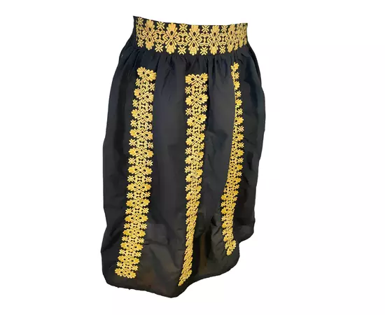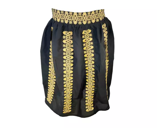 Fusta Traditionala Neagra cu Broderie Florala Crem - FTSF07