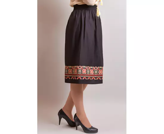 Fusta Traditionala Neagra cu Broderie Florala Multicolora- FTSF10