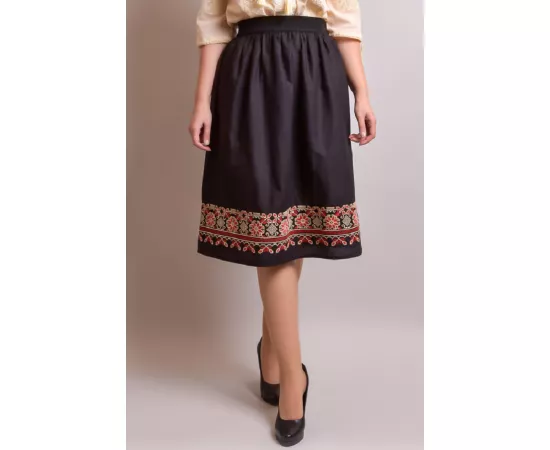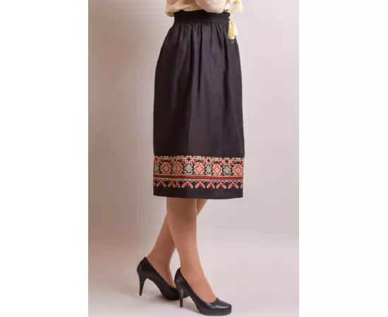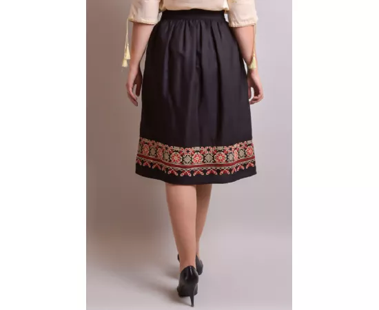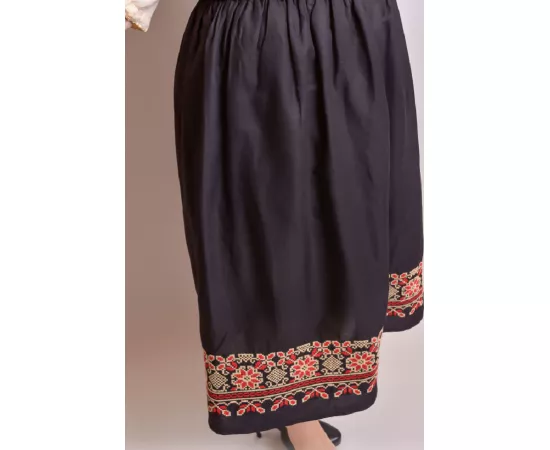 Fusta Traditionala Neagra cu Broderie Florala Multicolora- FTSF10