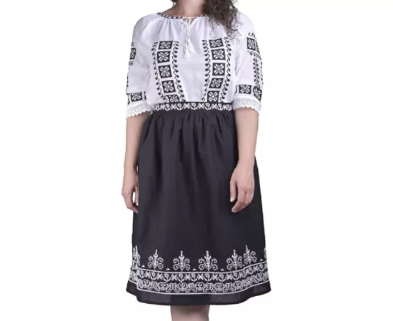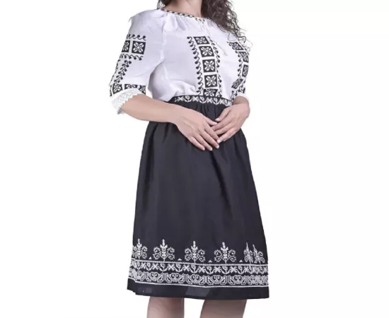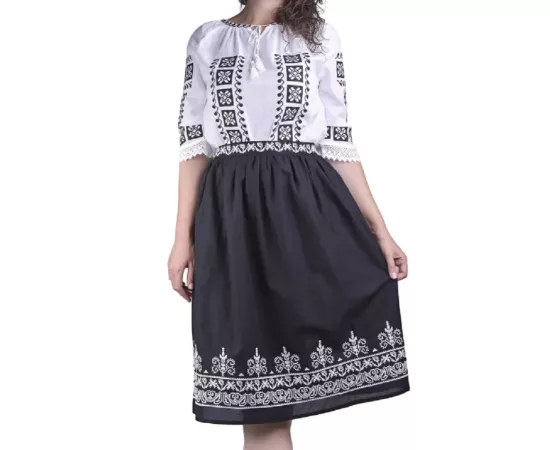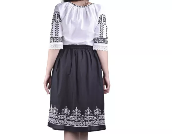 Fusta Traditionala Neagra cu Broderie Geometrica Alba - FTSF20