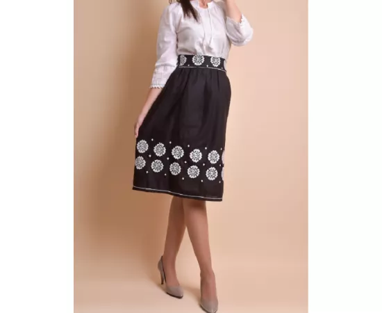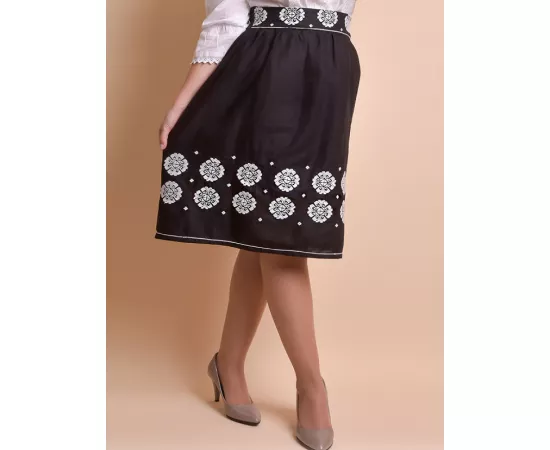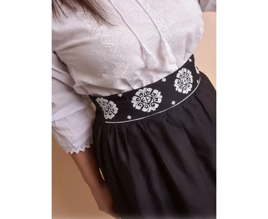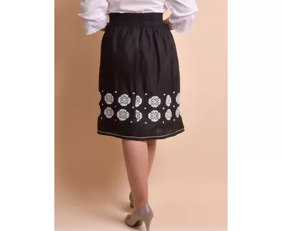 Fusta Traditionala Verde cu Broderie Florala Alba - FTSF19