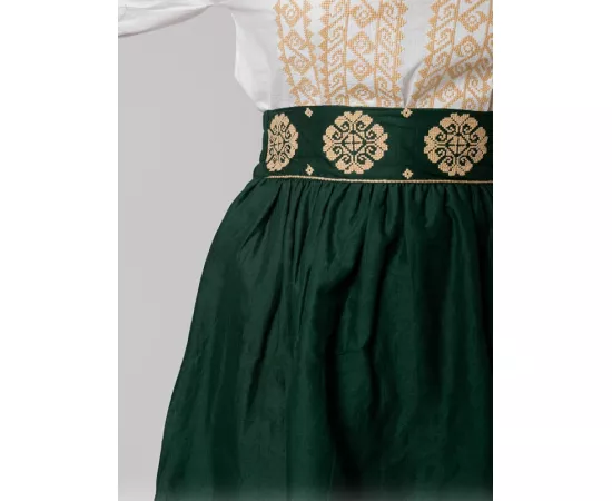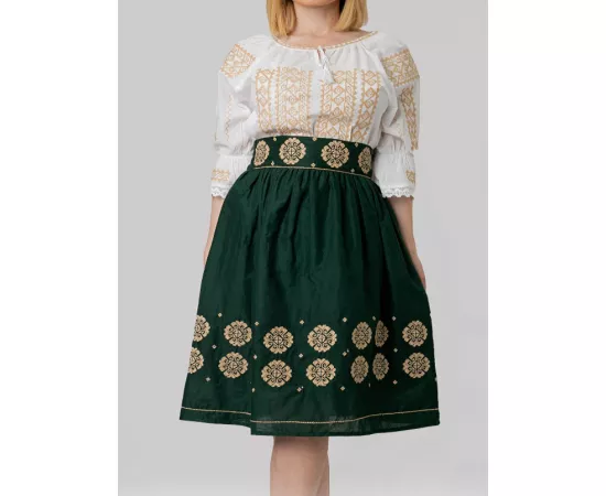 Fusta Traditionala Verde cu Broderie Florala Crem