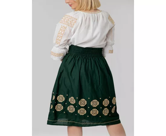 Fusta Traditionala Verde cu Broderie Florala Crem - FTSF06