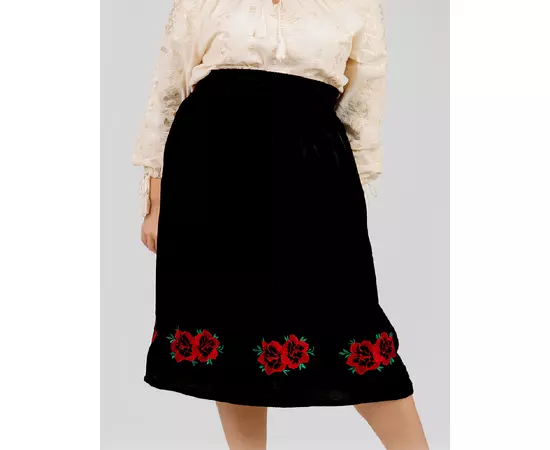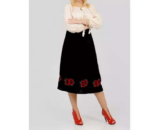 Fusta Traditionala Verde cu Broderie Florala Rosie - FTSF15