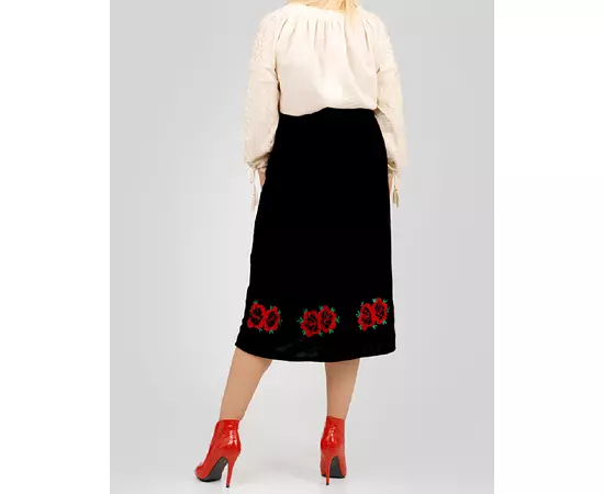 Fusta Traditionala Verde cu Broderie Florala Rosie
