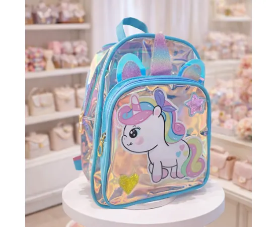 Un accesoriu magic pentru micile visătoare, acest ghiozdănel strălucitor cu personaj fermecat aduce un plus de culoare și bucurie oricărei zile. Confecționat din material holografic lucios, cu detalii sclipitoare și imprimeu adorabil, este ideal pentru grădiniță, joacă sau plimbări. Designul său jucăuș, completat cu urechiușe și corn colorat, transformă fiecare purtare într-o poveste de basm.