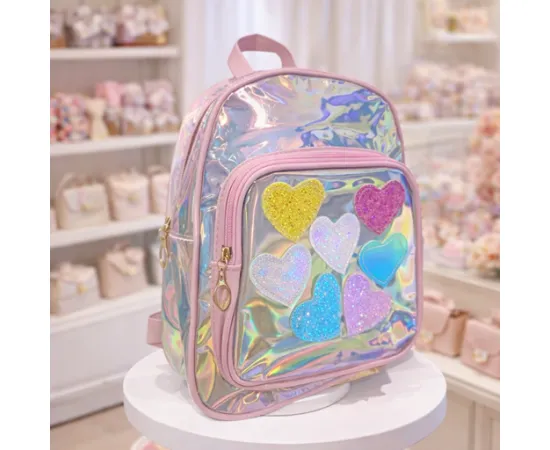 Un ghiozdan spectaculos care captează toate privirile! Acest model Karmiseé este ideal pentru fetițele care adoră culorile vii, accentele sclipitoare și designul modern. Decorat cu inimioare din material glitter și irizații holografice, ghiozdanul este alegerea perfectă pentru grădiniță, plimbări sau activități de zi cu zi.