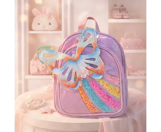 Acest model fermecător este decorat cu o aripă de fluture supradimensionată și strălucitoare, alături de dungi cu paiete colorate. Perfect pentru fetițele care vor să iasă în evidență cu un accesoriu plin de magie și culoare.