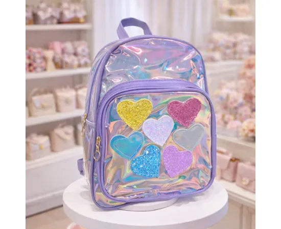 Un ghiozdan spectaculos care captează toate privirile! Acest model Karmiseé este ideal pentru fetițele care adoră culorile vii, accentele sclipitoare și designul modern. Decorat cu inimioare din material glitter și irizații holografice, ghiozdanul este alegerea perfectă pentru grădiniță, plimbări sau activități de zi cu zi.