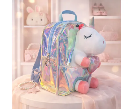 Un ghiozdan adorabil pentru fetițe, cu design spectaculos și inserție de jucărie pluș 3D din pluș. Cu un efect irizat captivant și curele reglabile, acest ghiozdan este alegerea perfectă pentru micile visătoare care adoră magia și stilul. Practic și ușor, este ideal pentru grădiniță, ieșiri sau plimbări zilnice.