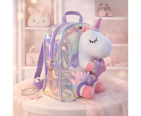 Un ghiozdan adorabil pentru fetițe, cu design spectaculos și inserție de jucărie pluș 3D din pluș. Cu un efect irizat captivant și curele reglabile, acest ghiozdan este alegerea perfectă pentru micile visătoare care adoră magia și stilul. Practic și ușor, este ideal pentru grădiniță, ieșiri sau plimbări zilnice.