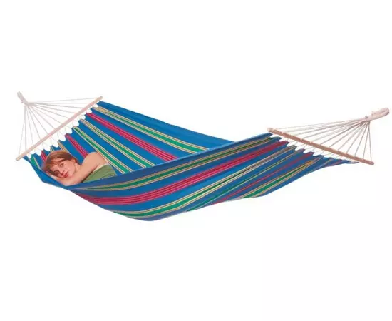 Hamac cu bare din lemn 120 x 210 cm- albastru cu dungi