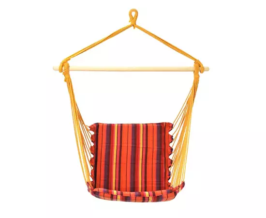 Scaunul tip hamac ofera un spatiu de relaxare atat in interiorul casei, cat si in gradina. Materialul special captusit asigura confort si suport suplimentar, in timp ce bara de sustinere permite montarea si demontarea usoara a accestuia, fiind astfel stabil si usor de rotit.