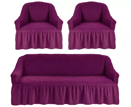 Huse Elastice si Creponate, Canapea 3 Persoane + 2 Fotolii, Mov - HEP36