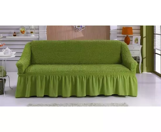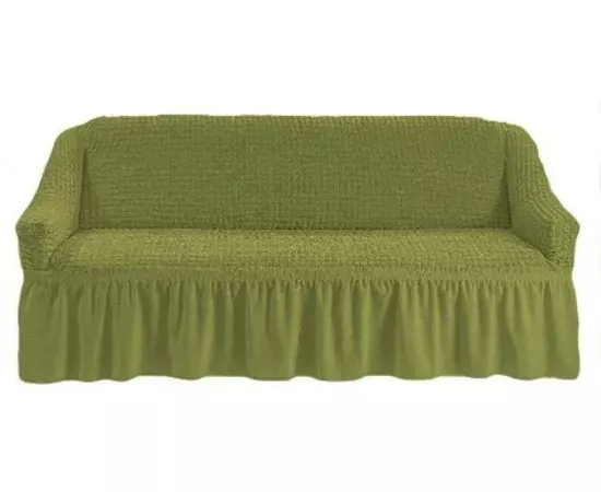 Husa pentru Canapea 3 Locuri, Elastica si Creponata, cu Volane, Verde-HEP21